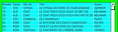 une partie du mot (avec cha: on trouvera chat, château, achat, pourchasse...). La liste des livres trouvés s'affiche, elle peut être consultée en utilisant les ascenseurs à droite et en bas de la liste.