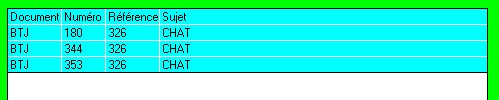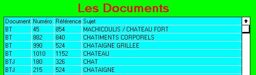 Le bouton Partie du sujet permet de trouver tous les documents dont le sujet contient le critère de recherche. Exemple CHAT donnera tous les documents parlant des chât eaux, de la chat aigne ...
