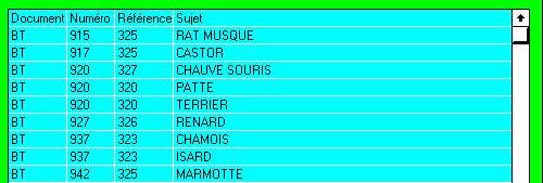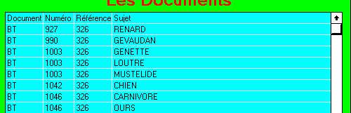 Le bouton thème permet de trouver tous les documents référencés sous un thème. Exemple 326 donnera tous les documents parlant des carnivores