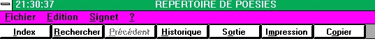 Un fichier de 400 poésies vous est proposé. Il s'utilise comme les fichiers d'aide de Windows. Veuillez consulter votre manuel sur Windows.