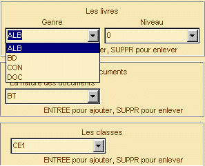 | LIVRE DOCUMENT CLASSE Pour disposer d'informations dans la gestion des livres, des documents et des élèves, afin de ne pas avoir à les taper pour chaque fiche. |