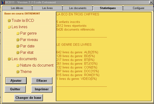 - Toute la BCD: Compte le nombre d'enfants, de livres et de documents